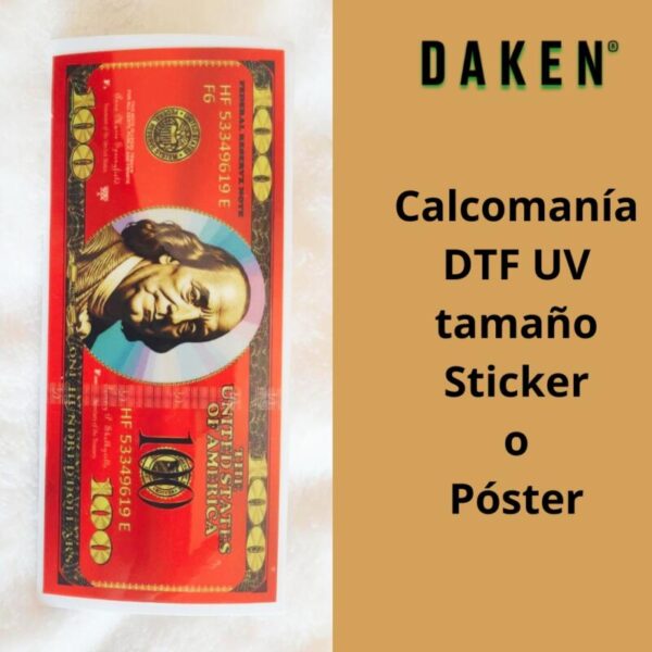 Calcomanía DTF UV – Dólar Fantasía Rojo con Óvalo Arcoiris